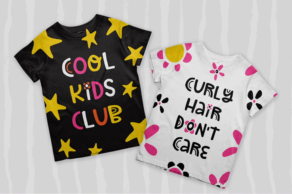 Happy to introduce Rogalik - a fun and playful hand-lettered uppercase font with Latin and Cyrillic letters! "Rogaliki" is the name of my favorite cookies that my mom baked in my childhood:) So this font could be perfect for children's apparel, cute greeting cards, nursery posters, stickers, and other projects with a naive and happy mood.